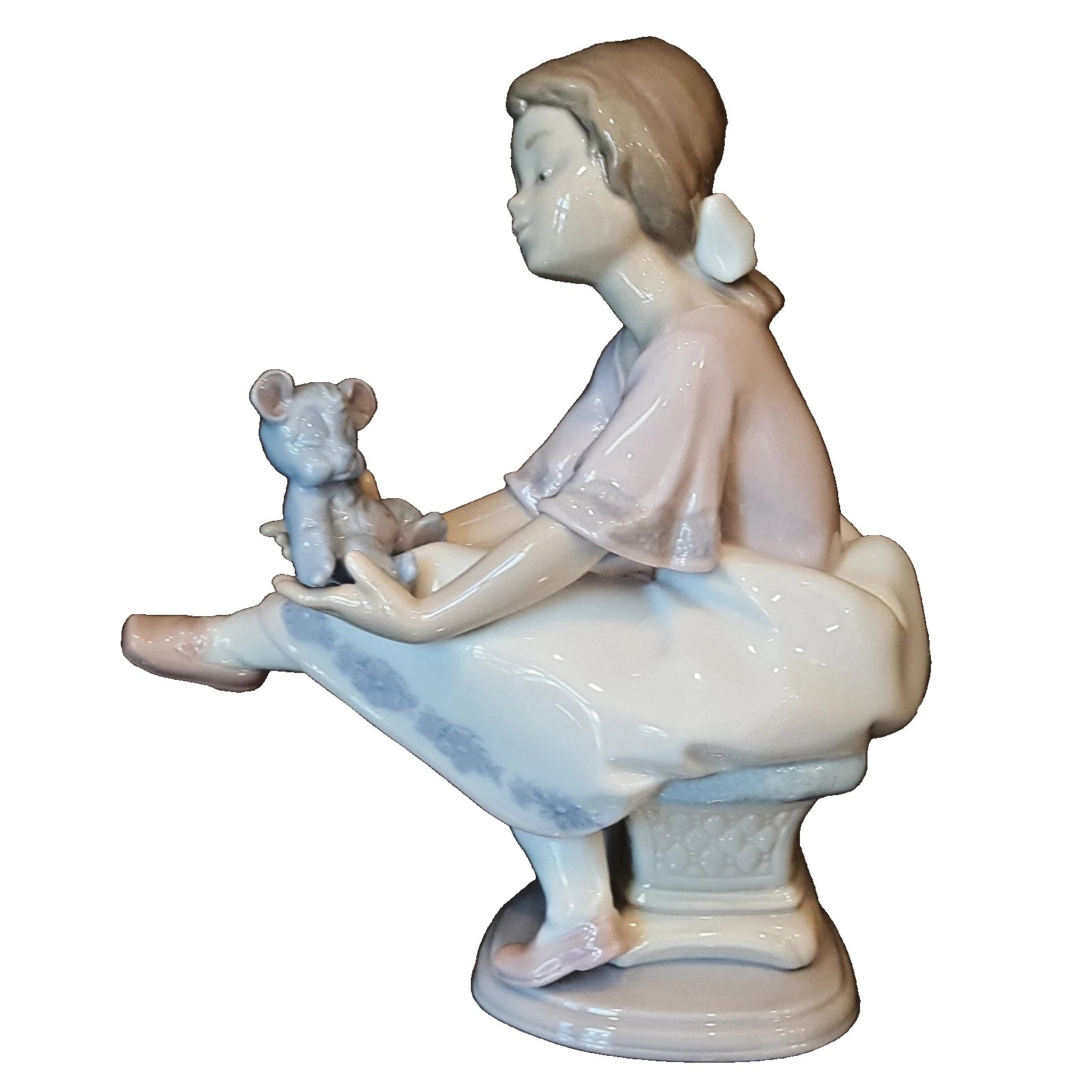 Capture the warmth of childhood companionship with this charming Lladro Collectors Society figurine, #7620 “Best Friend”. Designed in 1993 and now retired, this piece portrays a young girl seated serenely, embracing her blue teddy bear with a gentle smile. Crafted from high-quality Spanish porcelain and finished in Lladro’s signature soft gloss, the sculpted drapery of her dress and the bear’s plush texture are full of emotion and artistry.