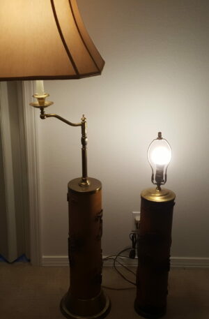 Golden Hour Reflections — Pair of Polished Brass Column Lamps with Pleated Ivory Shades 32″