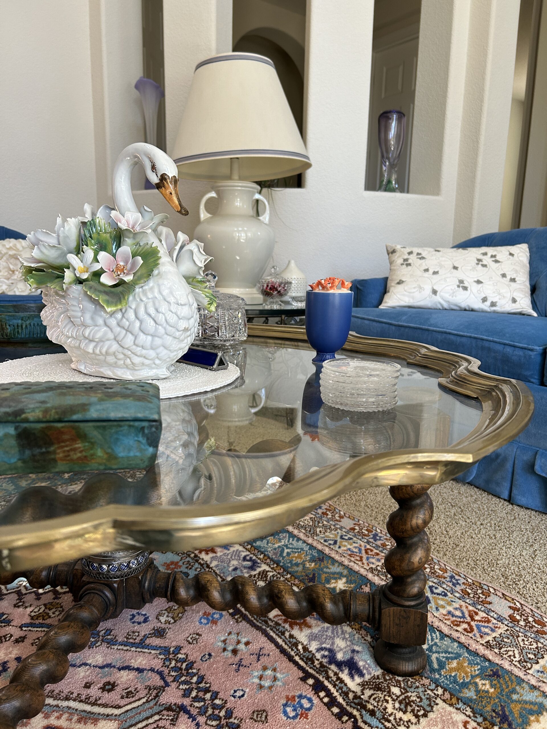 Golden Trio – Brass & Walnut Pedestal Stand for Cascading Greenery 38″